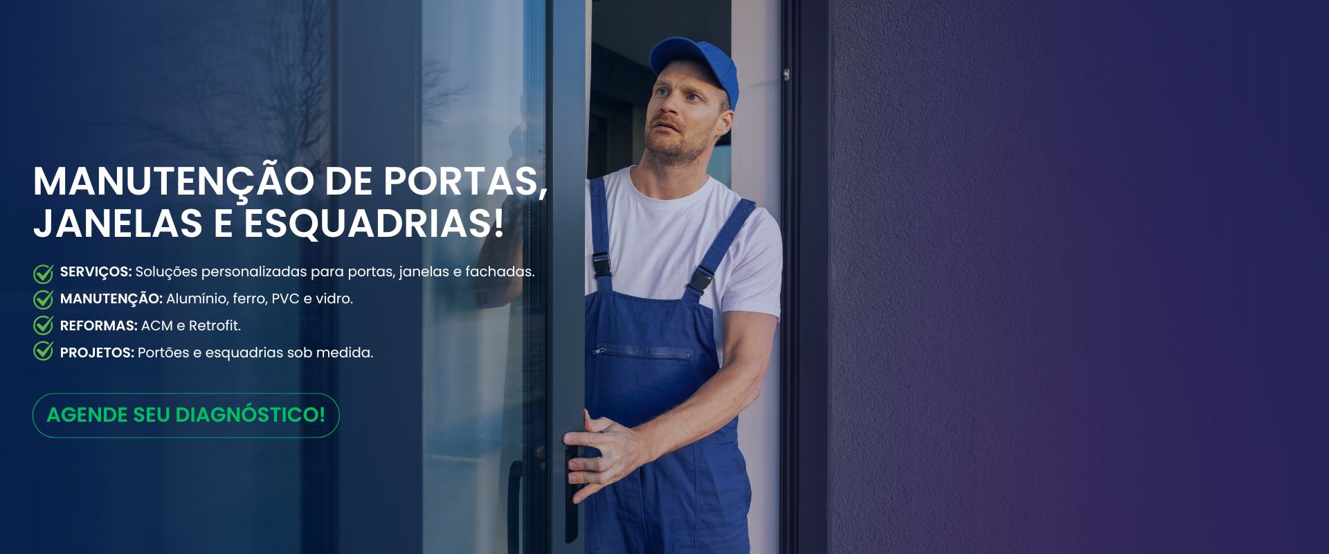 Manutenção de portas e janelas de ferro, alumínio, PVC e vidro temperado.