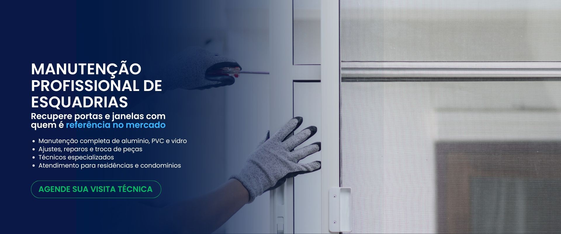 Manutenção de portas e janelas de ferro, alumínio, PVC e vidro temperado